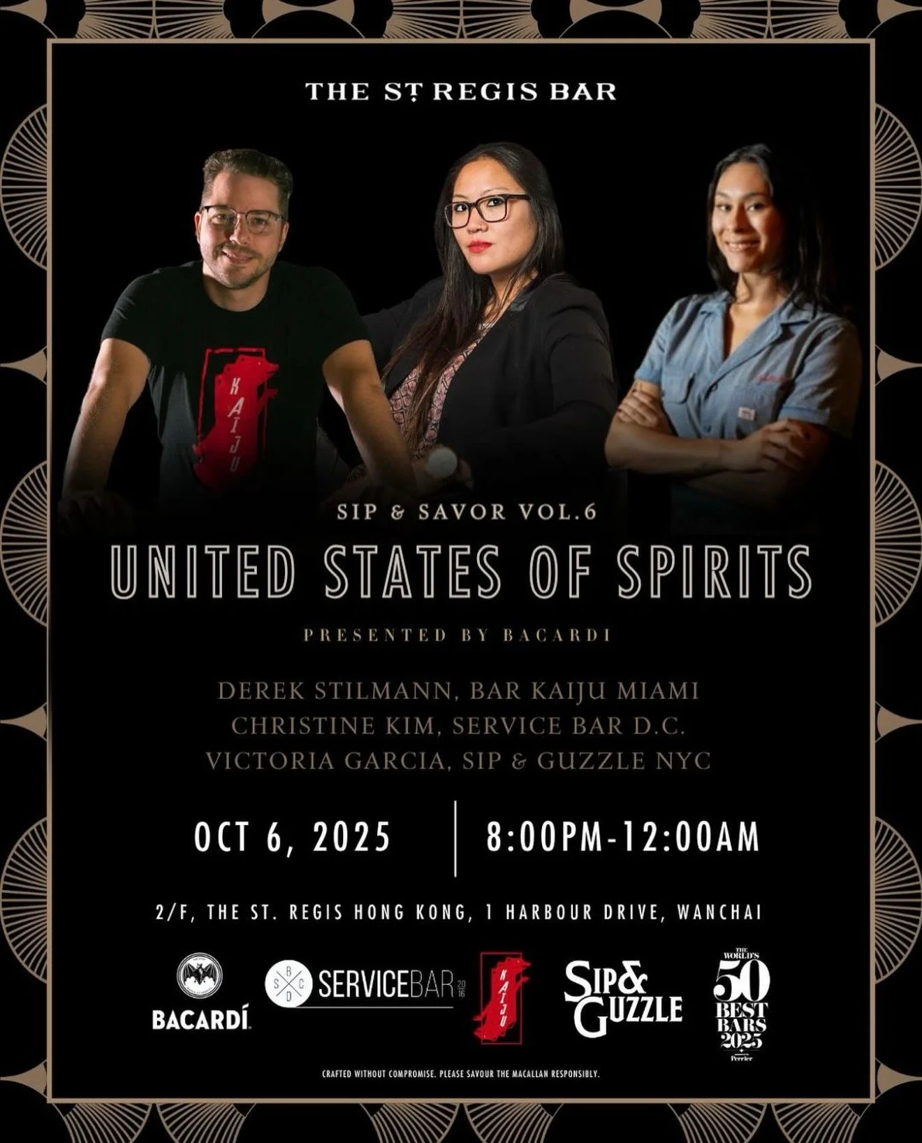 As Hong Kong welcomes The World’s 50 Best Bars, BACARDÍ presents Sip & Savor Vol. 6: United States of Spirits—a one-night-only, six-hands takeover at the St. Regis Bar Hong Kong. Three acclaimed bartenders from across the U.S. will come together behind the bar, fusing their signature styles, creativity, and craftsmanship into an unforgettable evening of cocktails.